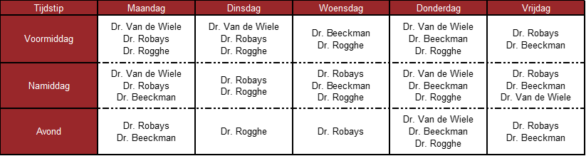 Indien u spoedeisende tandheelkundige zorg nodig heeft, is de tandarts van wacht bereikbaar op 0903/39969 (betalend)